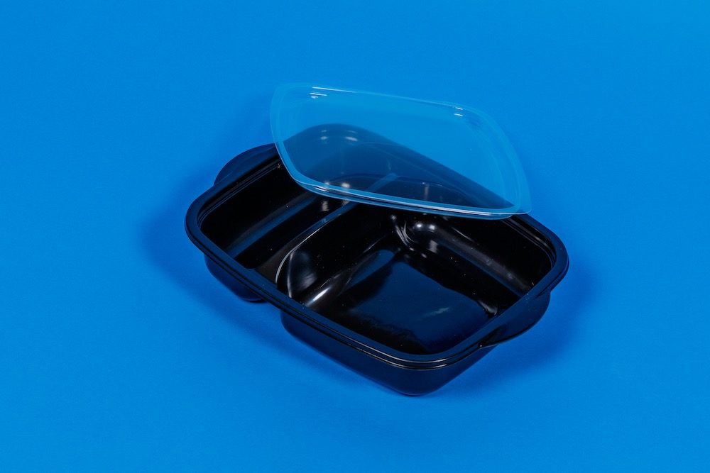 Mikrowellenschale 2 Fach schwarz PP mit Deckel 300 / Karton