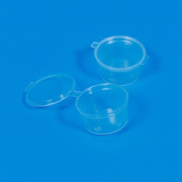 Saucenbecher 150ml rund transparent mit anhängendem Deckel (P.P.) 1000 / Karton