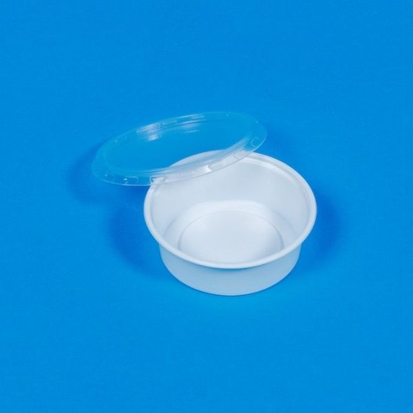 Saucenbecher 150ml rund transparent mit anhängendem Deckel (P.P.)